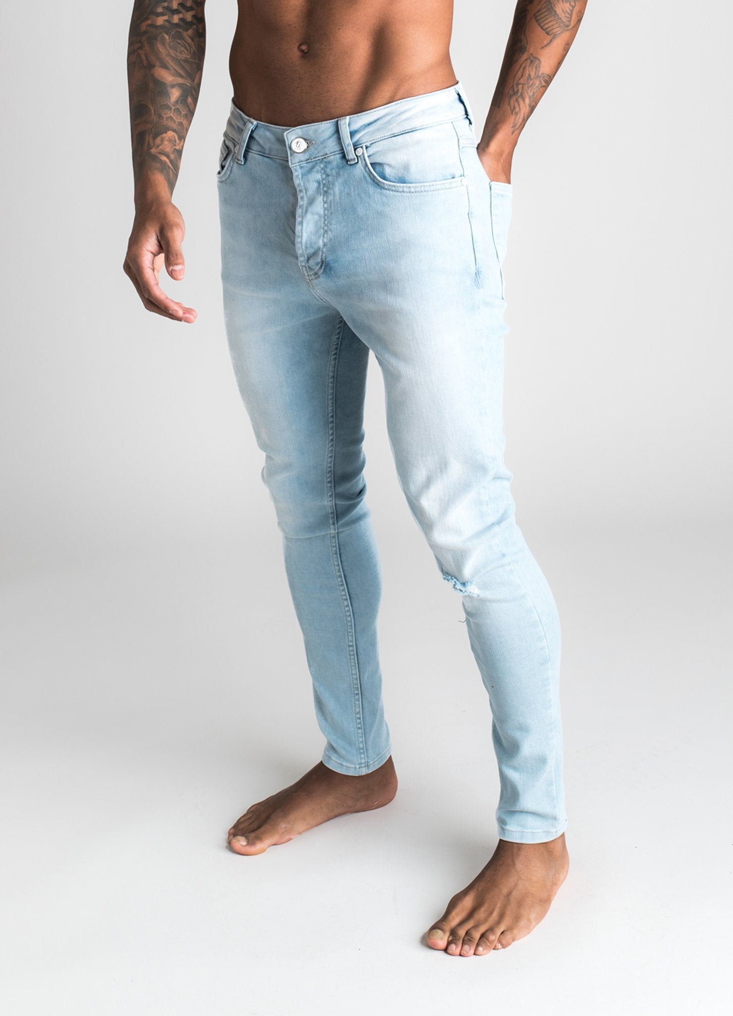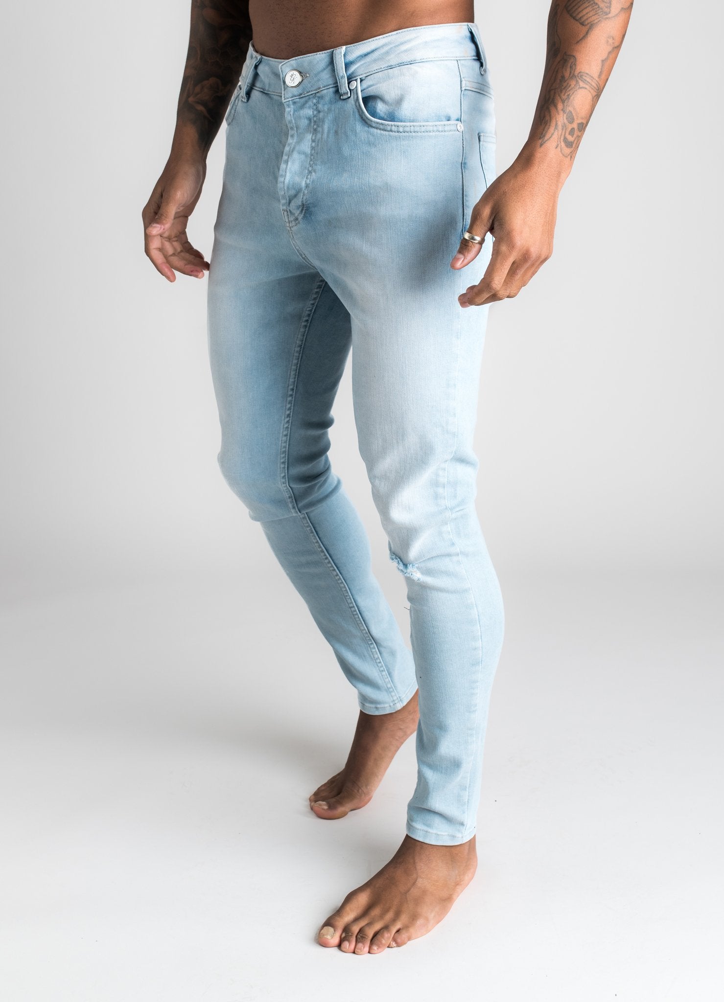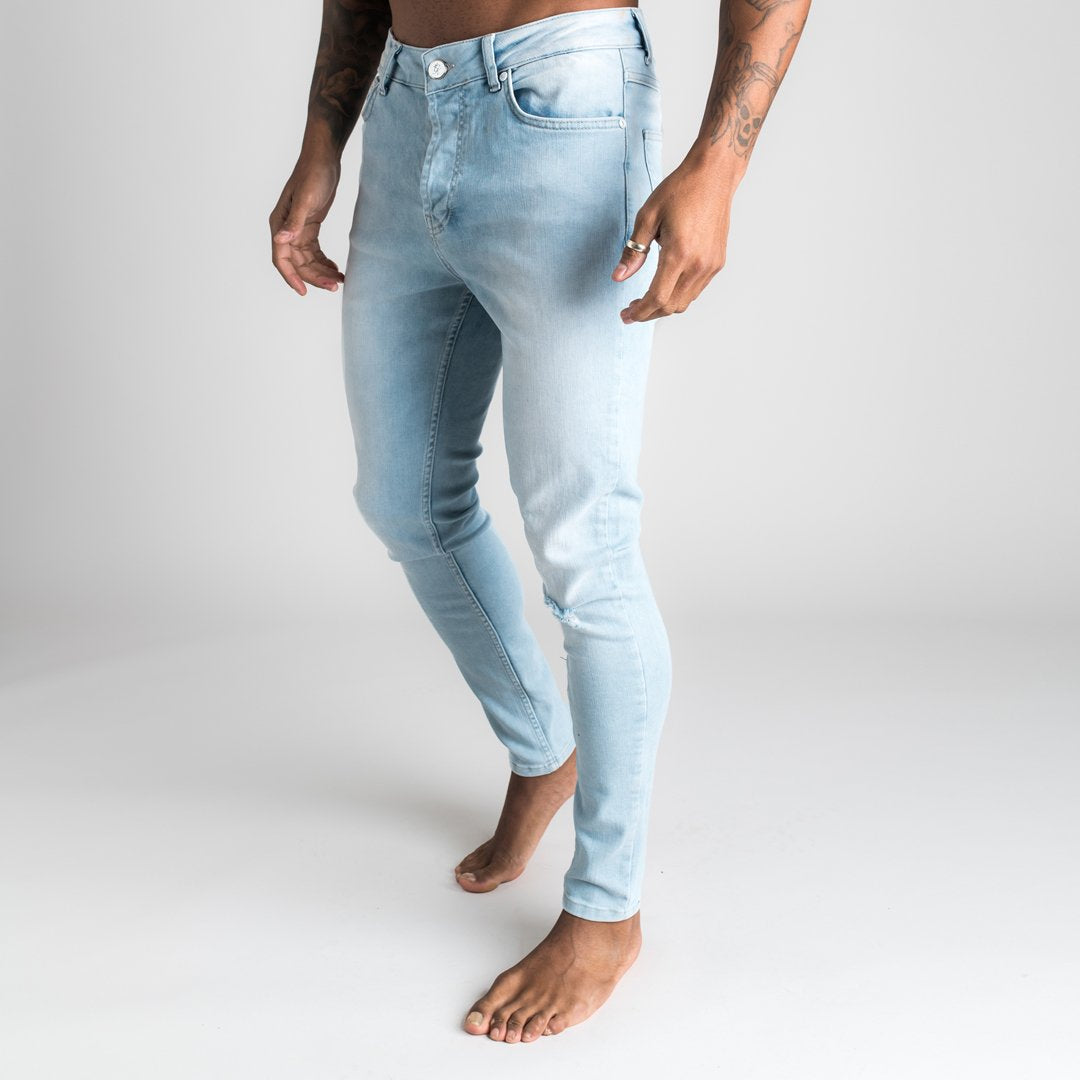 GK Denim Jayc Jeans Rip And Repair - Light Stone Wash