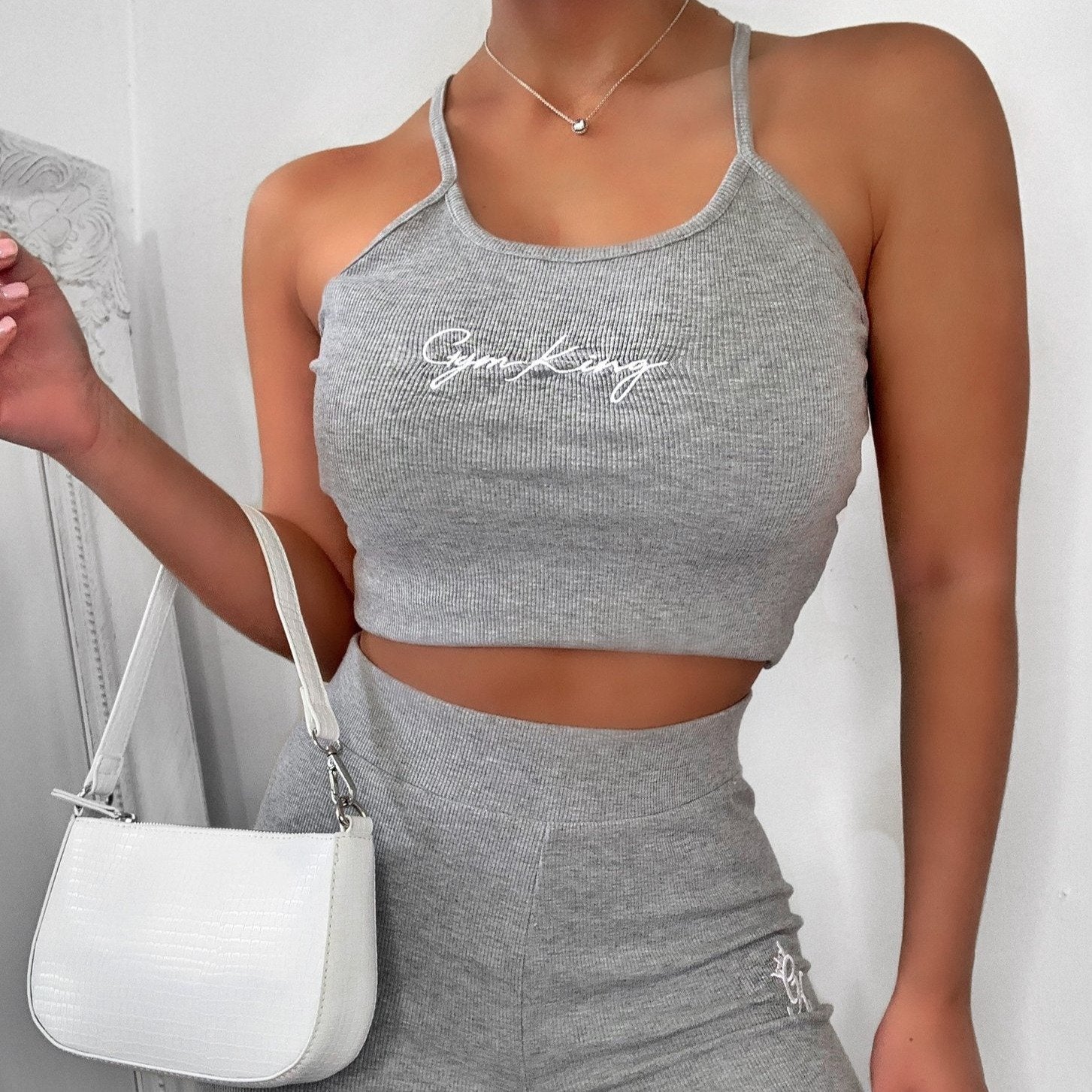- Embroidered Gym King script branding, in White